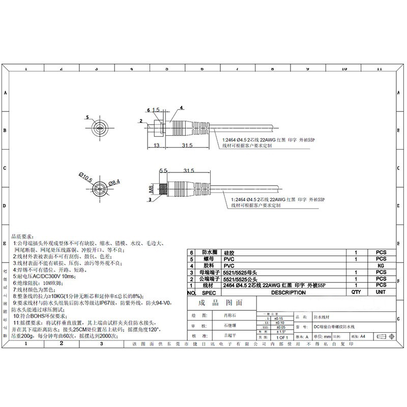 DC公母头防水线