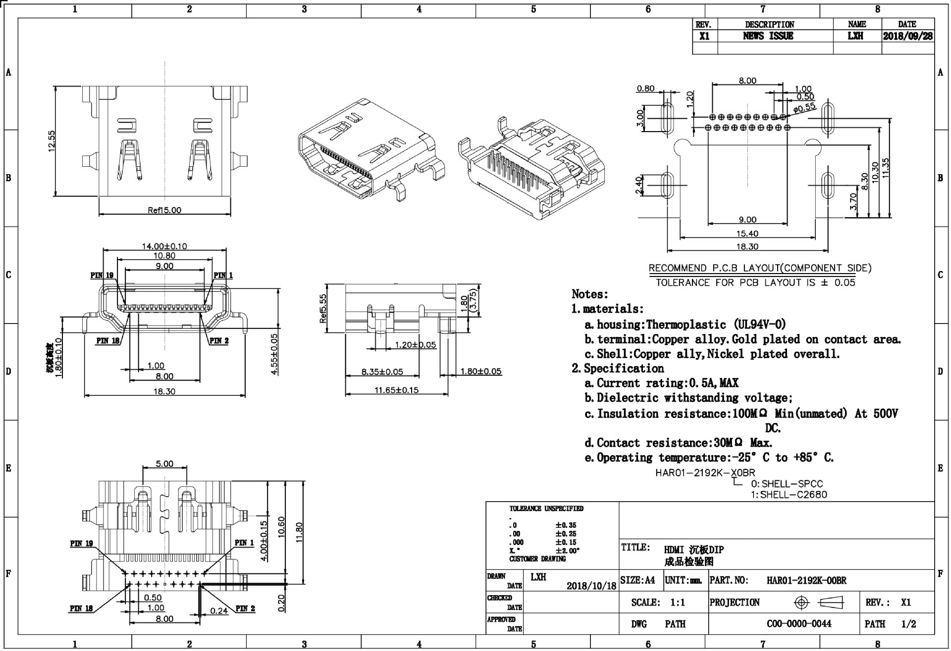 HDMI-19P沉板