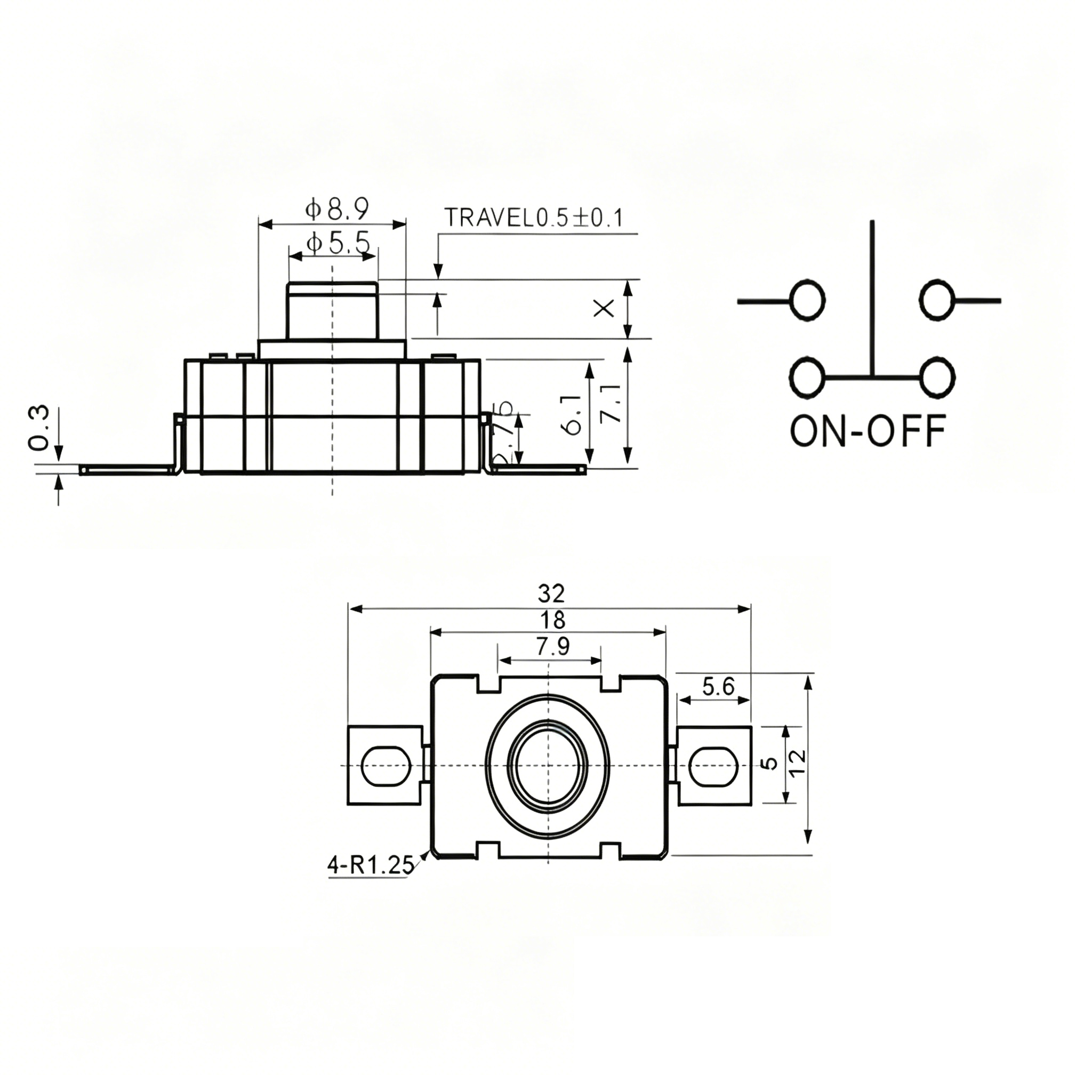 KAN-28按钮开关,是一款 2 脚直插式小型按钮开关,常用于手电筒、台灯、小家电等设备的电源通断控制