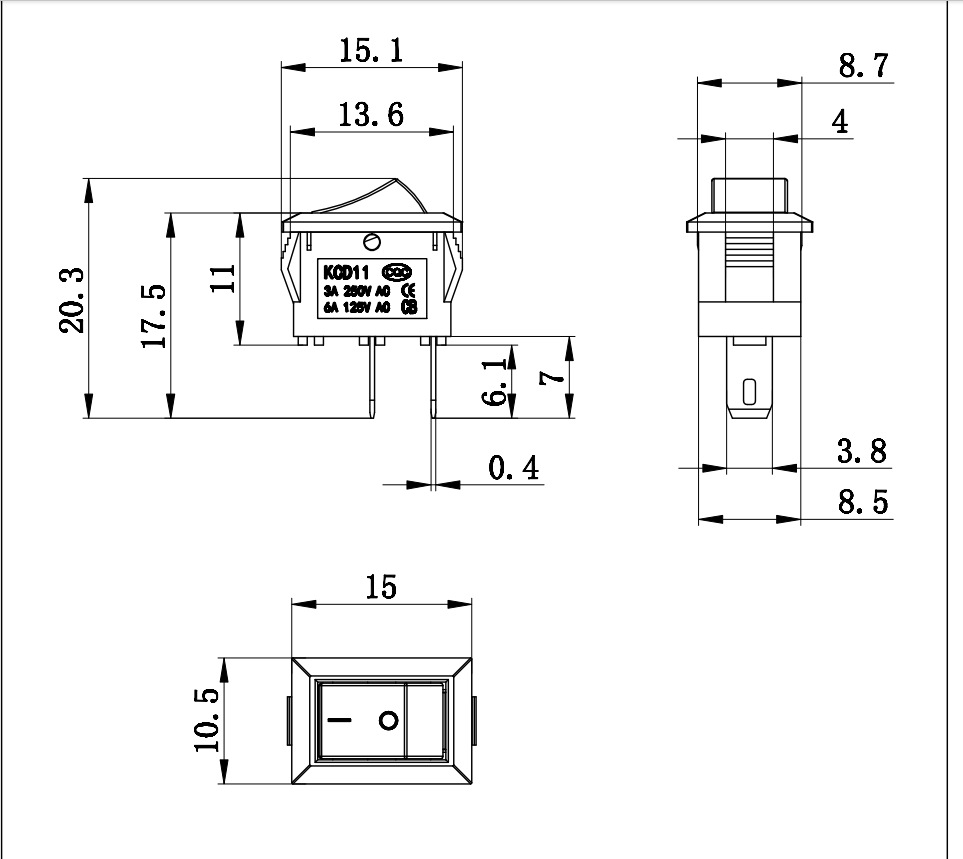 额定负荷:3A250V/6A125V